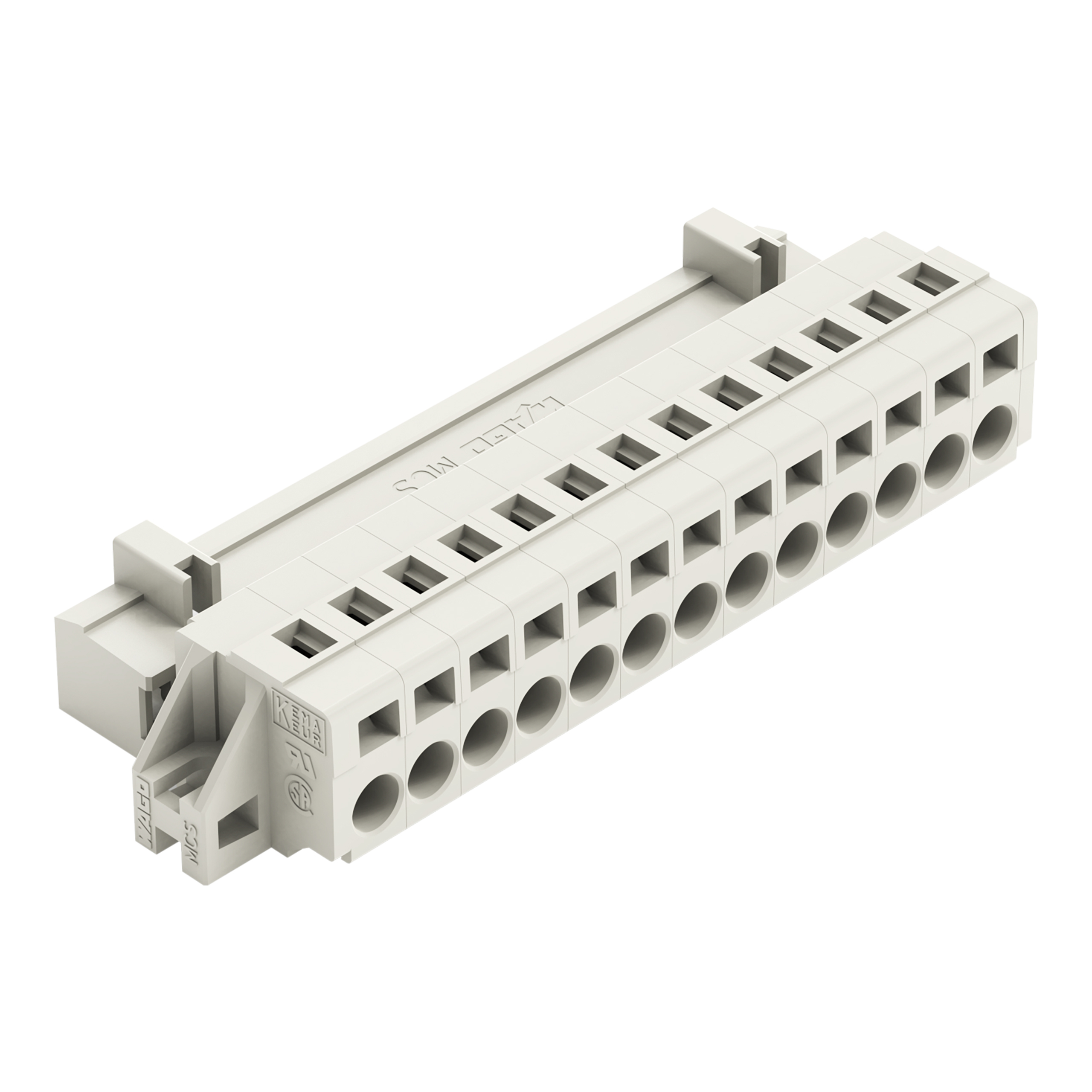 wtyk 1-przewodowy; CAGE CLAMP®; 2,5 mm²; raster 5 mm; 13-bieg.; 100% ochrona przed błędnym połączeniem; kołnierz mocujący; 2,50 mm²; jasnoszary