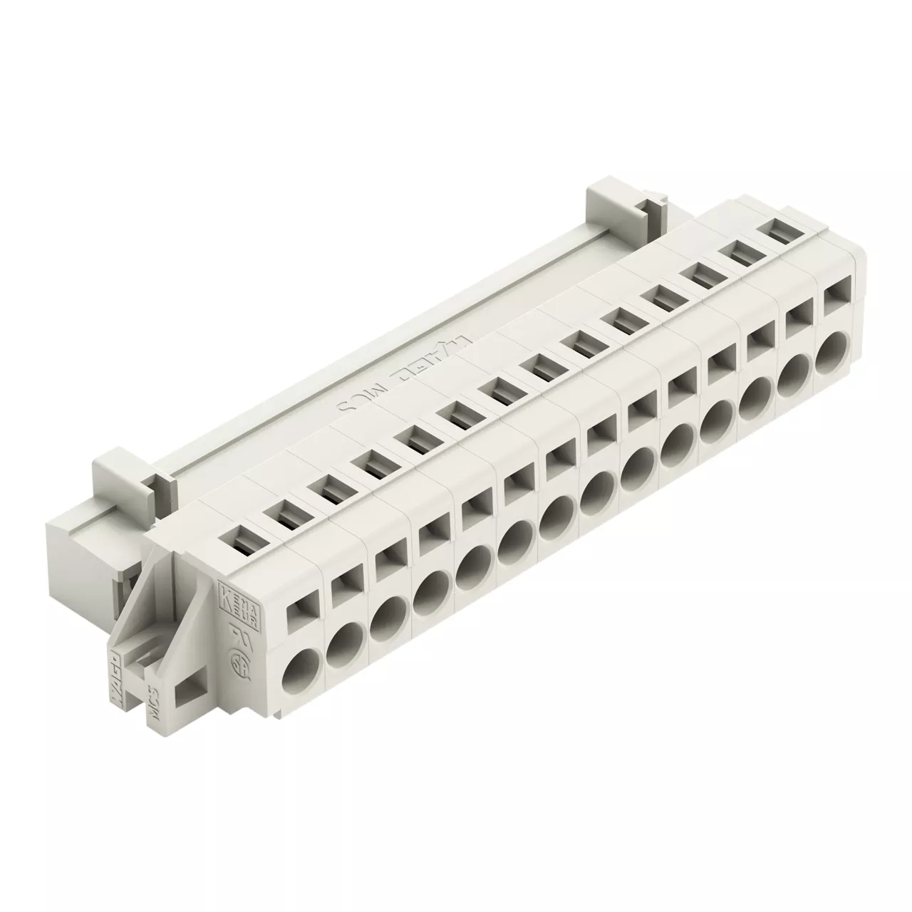 wtyk 1-przewodowy; CAGE CLAMP®; 2,5 mm²; raster 5 mm; 14-bieg.; 100% ochrona przed błędnym połączeniem; kołnierz mocujący; 2,50 mm²; jasnoszary