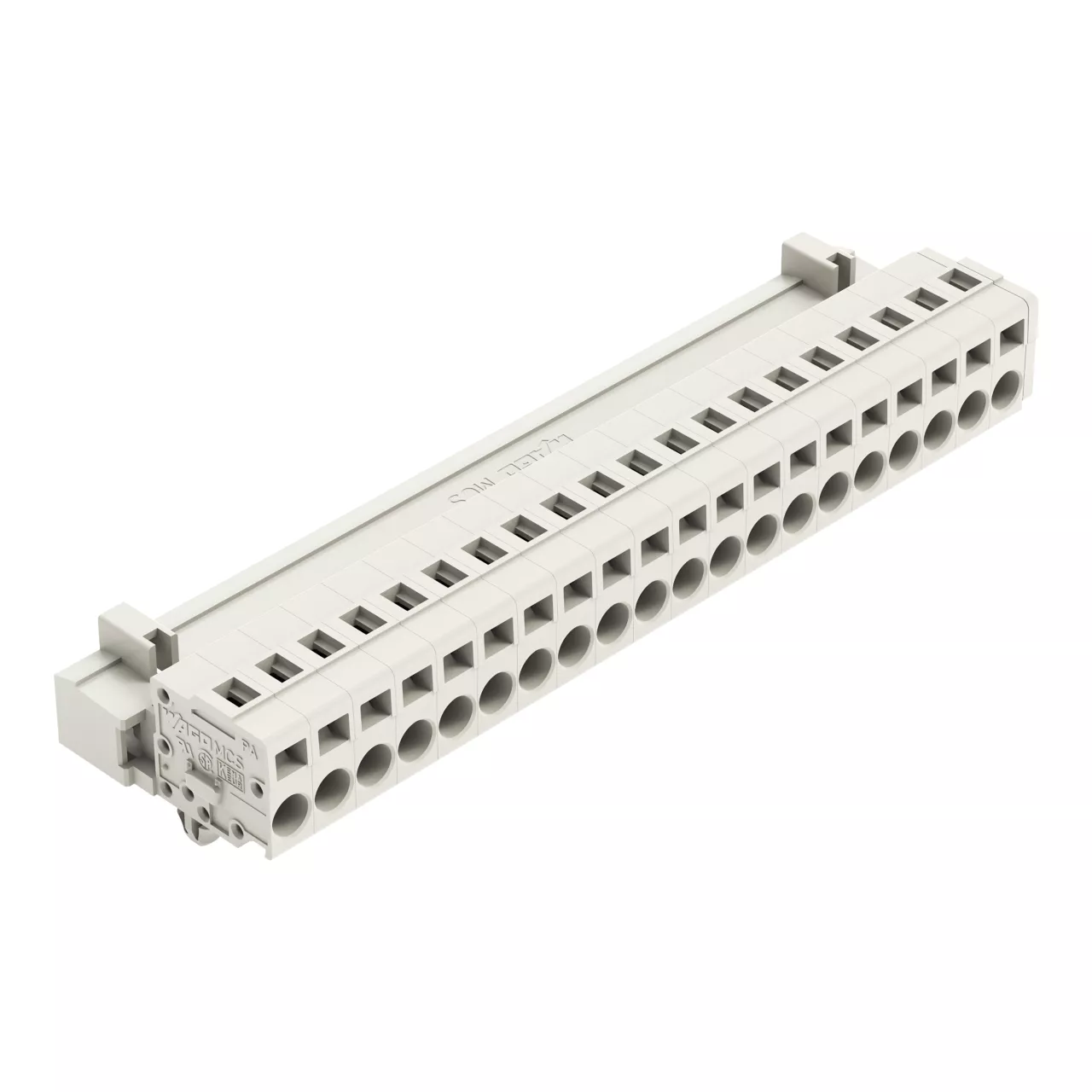 wtyk 1-przewodowy; CAGE CLAMP®; 2,5 mm²; raster 5 mm; 20-bieg.; 100% ochrona przed błędnym połączeniem; TS 35/montaż na płycie; stopki zatrzaskowe; 2,50 mm²; jasnoszary