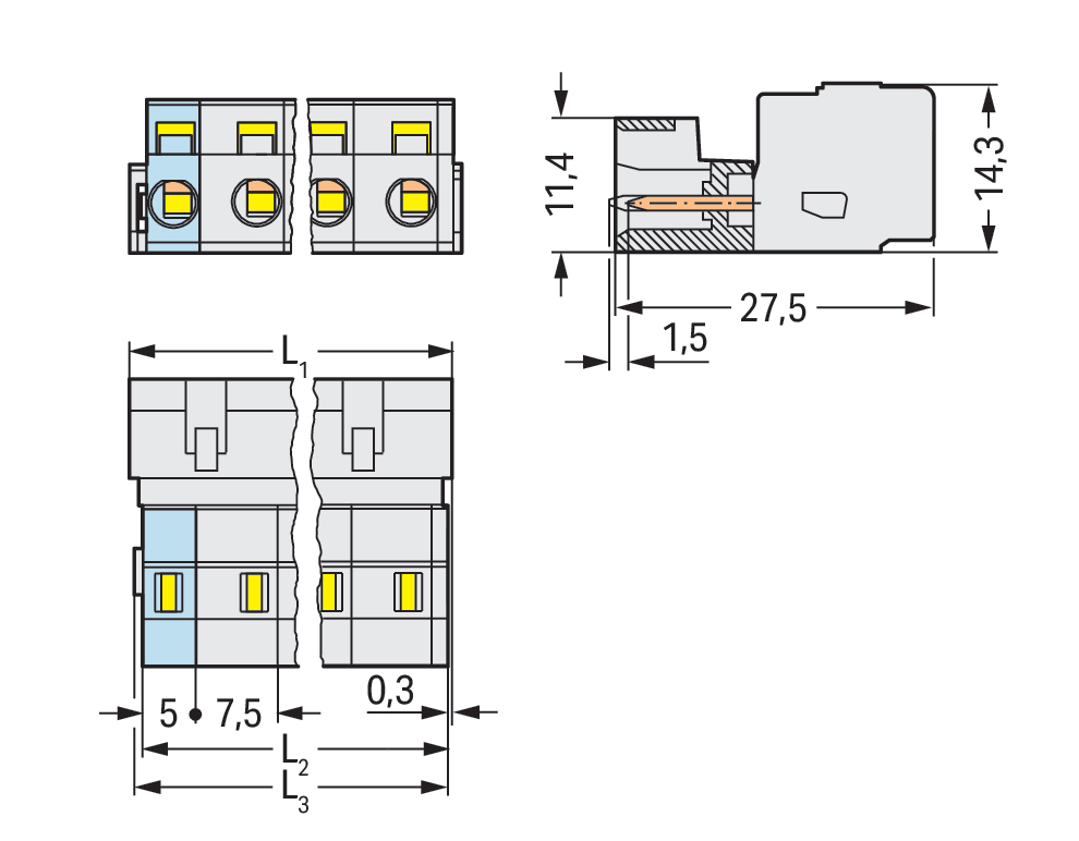 wtyk 1-przewodowy; CAGE CLAMP®; 2,5 mm²; raster 7,5 mm; 2-bieg.; 100% ochrona przed błędnym połączeniem; płytka odciążająca przewody; 2,50 mm²; jasnoszary
