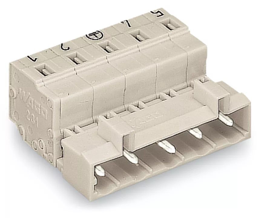 wtyk 1-przewodowy; CAGE CLAMP®; 2,5 mm²; raster 7,5 mm; 5-bieg.; wyprzedzający styk PE; 100% ochrona przed błędnym połączeniem; z nadrukiem bezpośrednim; 2,50 mm²; jasnoszary