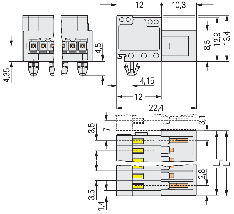wtyk 1-przewodowy; CAGE CLAMP®; 1,5 mm²; raster 3,5 mm; 3-bieg.; 100% ochrona przed błędnym połączeniem; TS 35/montaż na płycie; stopki zatrzaskowe; 1,50 mm²; jasnoszary