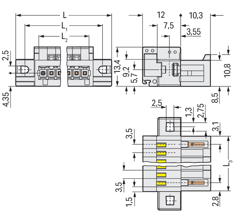 wtyk 1-przewodowy; CAGE CLAMP®; 1,5 mm²; raster 3,5 mm; 9-bieg.; 100% ochrona przed błędnym połączeniem; kołnierz mocujący; 1,50 mm²; jasnoszary