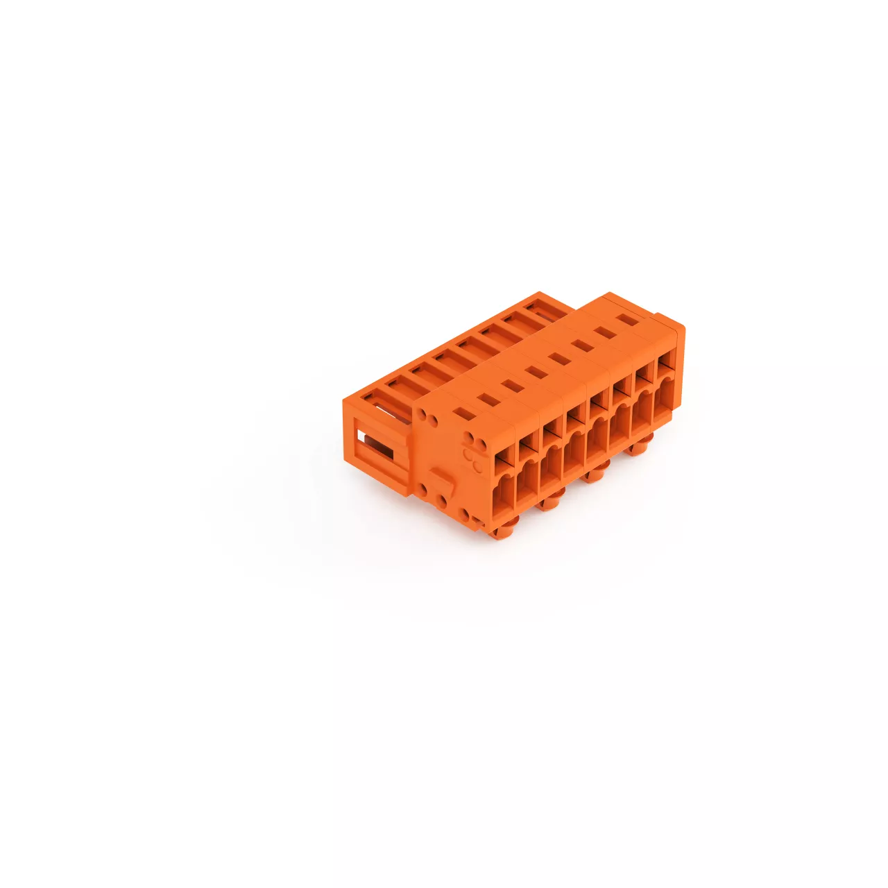 wtyk 1-przewodowy; CAGE CLAMP®; 1,5 mm²; raster 3,81 mm; 8-bieg.; 100% ochrona przed błędnym połączeniem; TS 35/montaż na płycie; stopki zatrzaskowe; 1,50 mm²; pomarańczowy