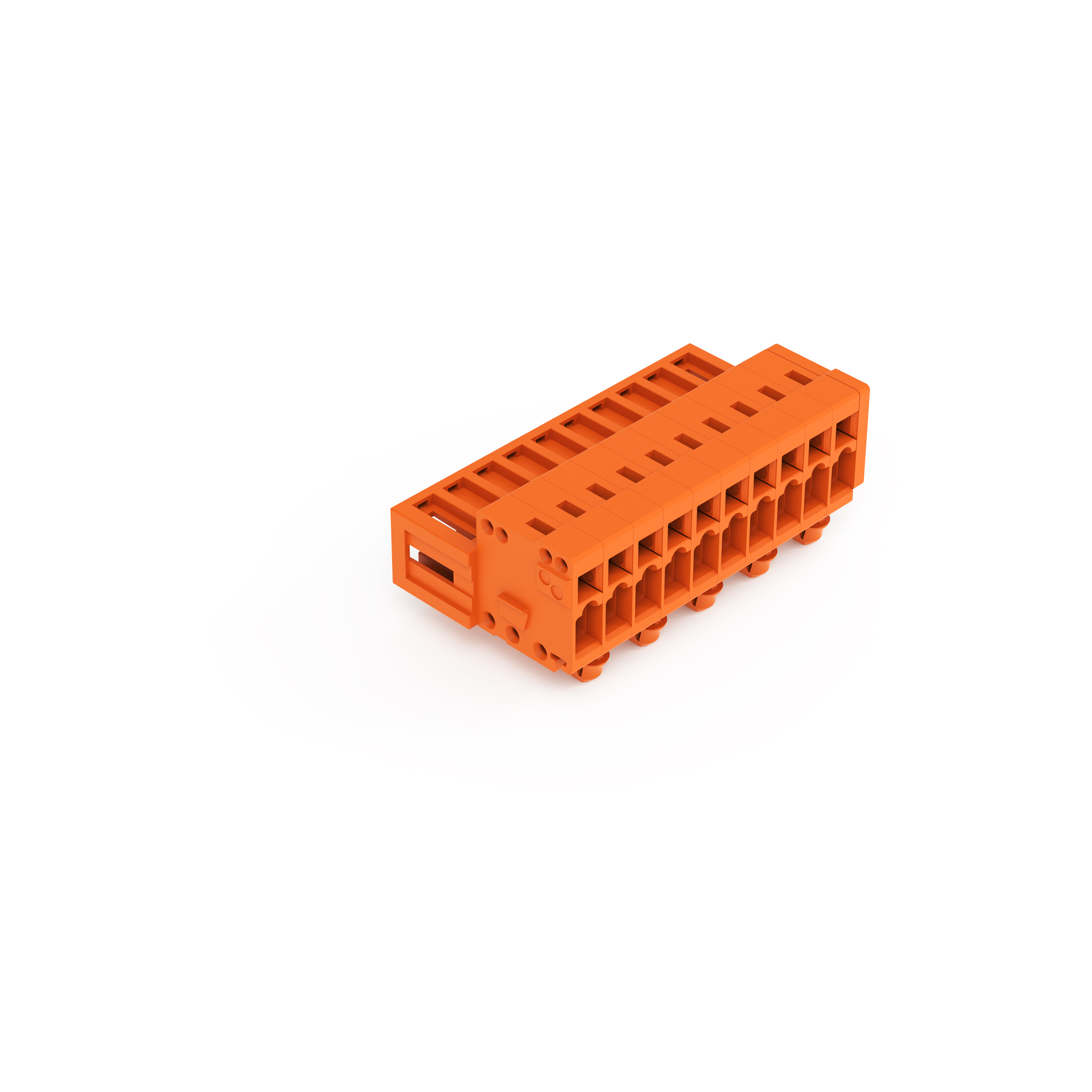 wtyk 1-przewodowy; CAGE CLAMP®; 1,5 mm²; raster 3,81 mm; 10-bieg.; 100% ochrona przed błędnym połączeniem; TS 35/montaż na płycie; stopki zatrzaskowe; 1,50 mm²; pomarańczowy