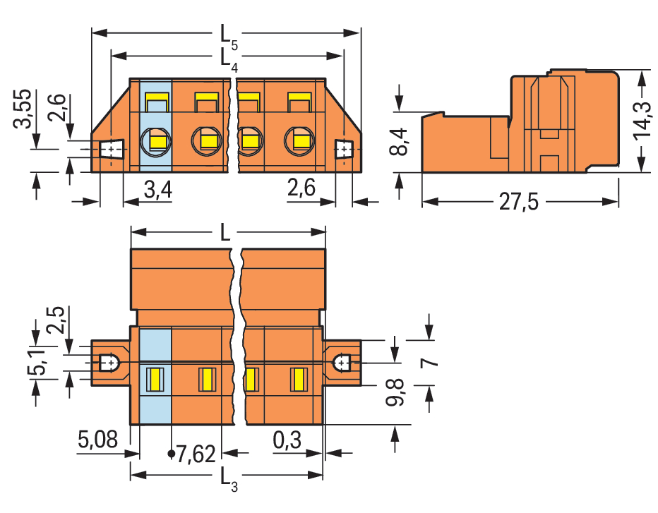 wtyk 1-przewodowy; CAGE CLAMP®; 2,5 mm²; raster 7,62 mm; 2-bieg.; kołnierz mocujący; 2,50 mm²; pomarańczowy