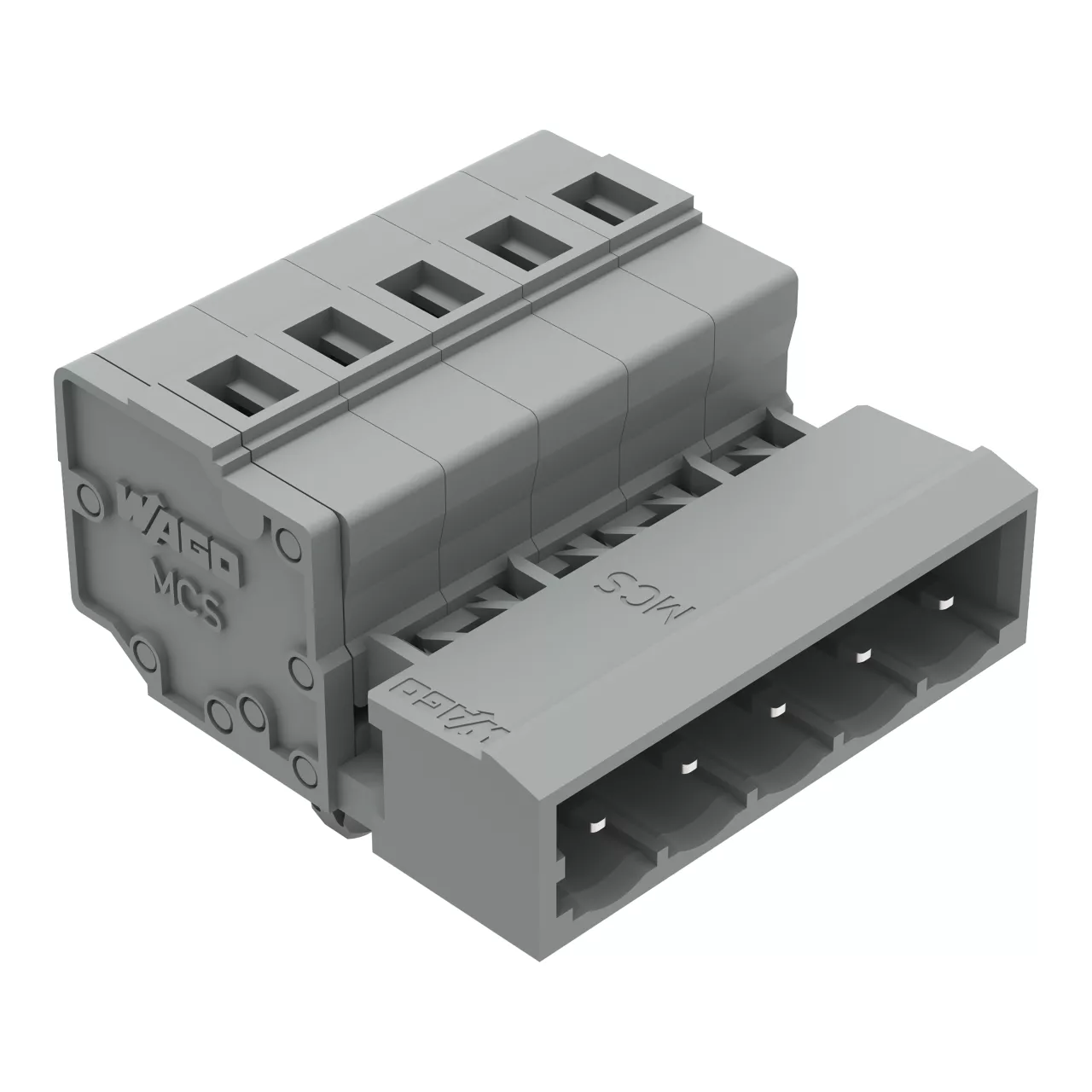 wtyk 1-przewodowy; CAGE CLAMP®; 2,5 mm²; raster 5 mm; 5-bieg.; TS 35/montaż na płycie; stopki zatrzaskowe; szary