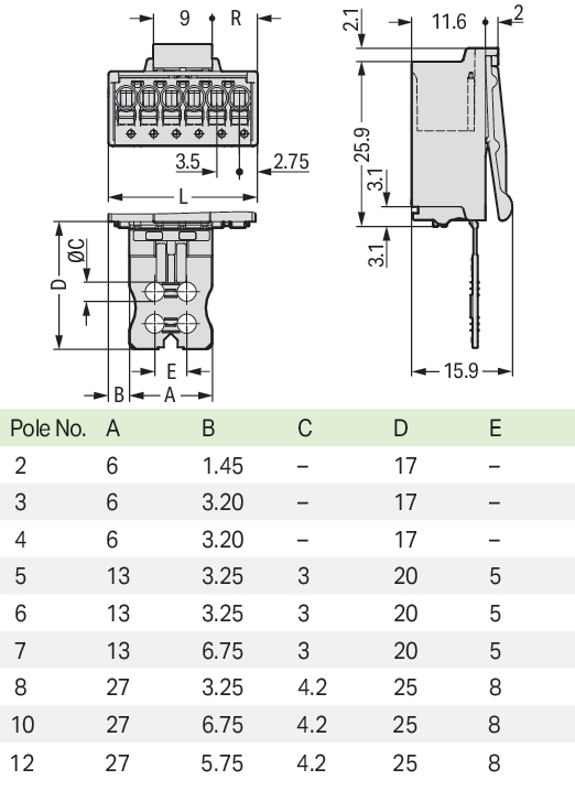 | Liczba zacisków na biegun: |