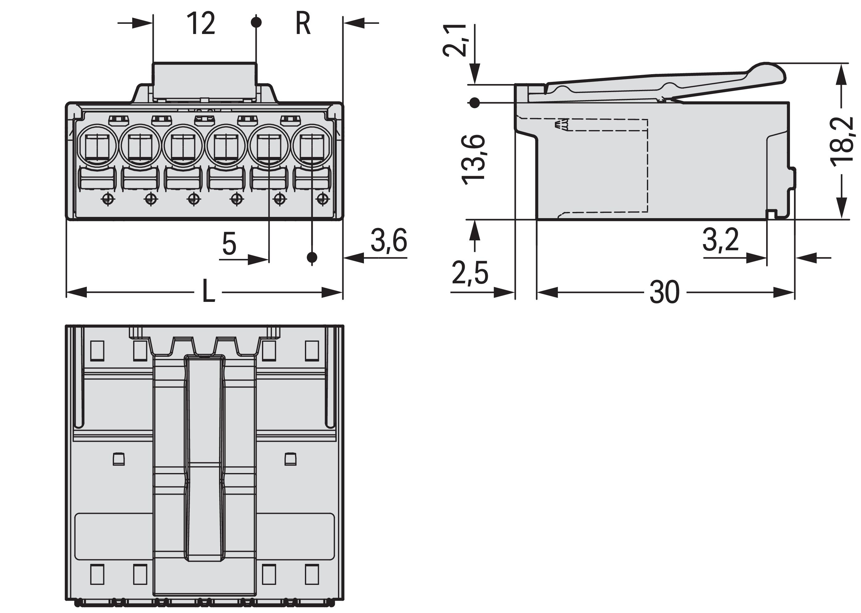 wtyk 1-przewodowy; Push-in CAGE CLAMP®; 2,5 mm²; raster 5 mm; 2-bieg.; dźwignia zwalniająca; 2,50 mm²; jasnoszary