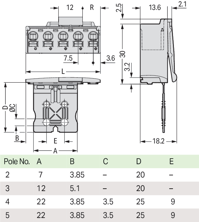 wtyk 1-przewodowy; Push-in CAGE CLAMP®; 2,5 mm²; raster 7,5 mm; 5-bieg.; płytka odciążająca; 2,50 mm²; jasnoszary