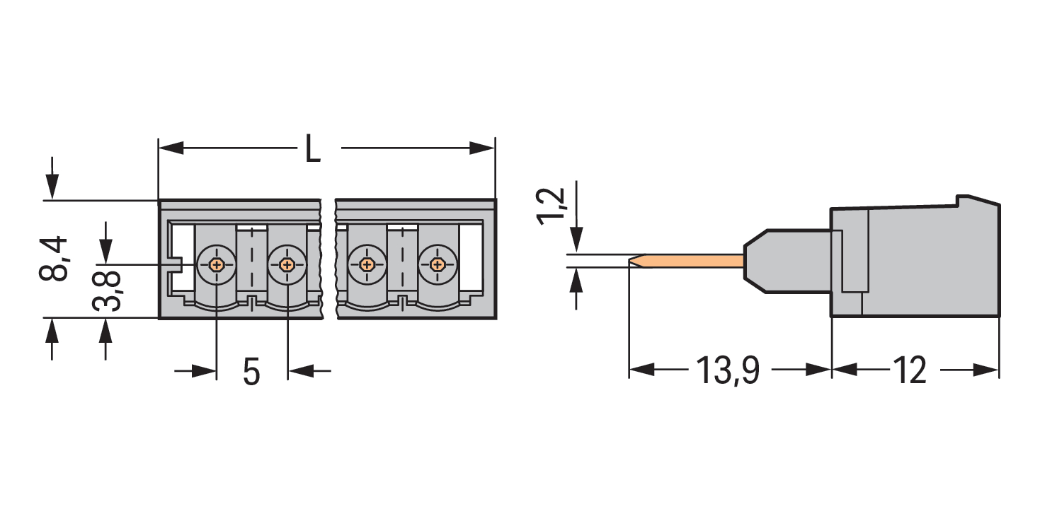Wtyk do złączek listwowych Piny 1,2 x 1,2 mm konstrukcja prosta, szary 231-170/003-000