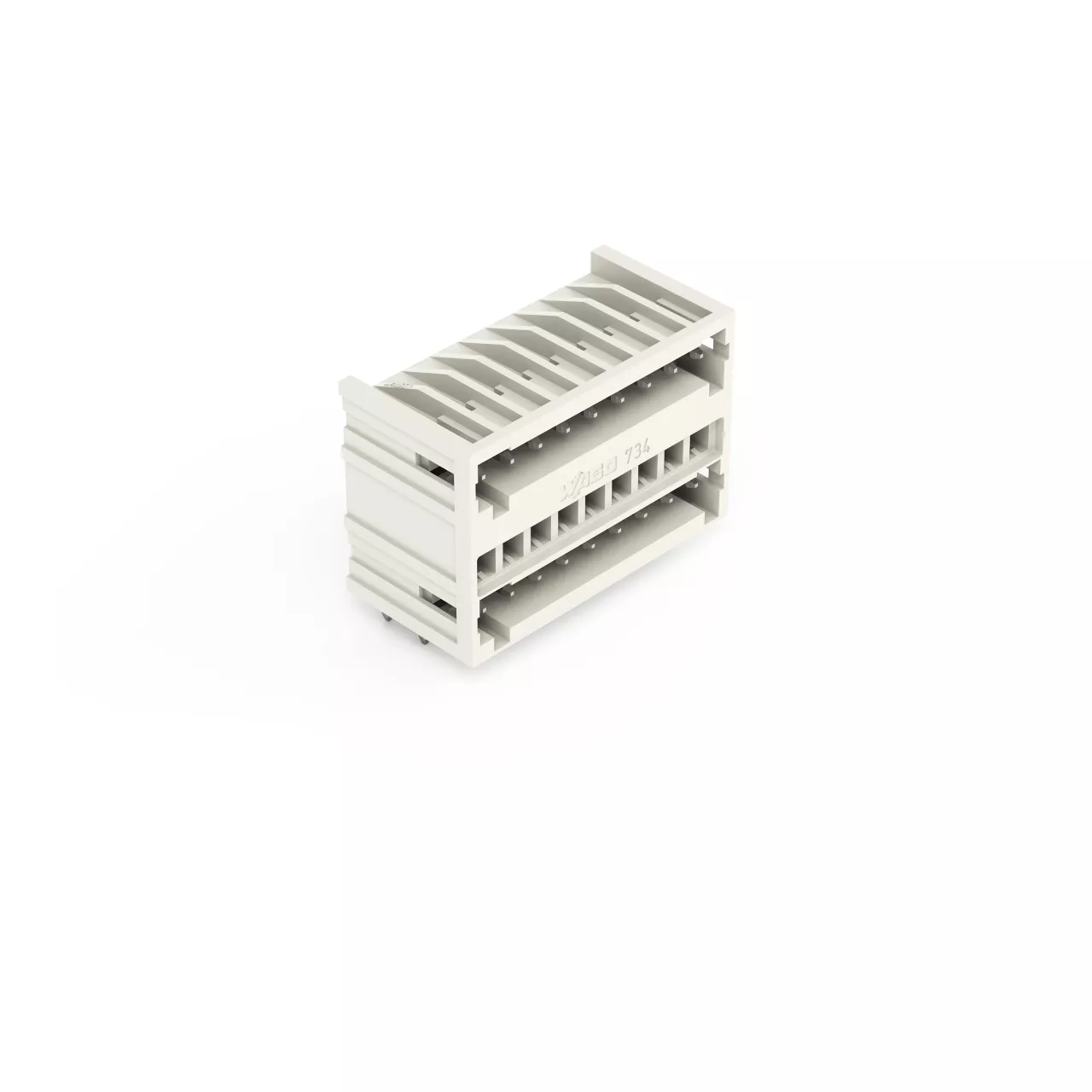 wtyk THT 2-piętrowy; pin lutowniczy 1,0 x 1,0 mm; konstrukcja kątowa; 100% ochrona przed błędnym połączeniem; raster 3,5 mm; 18-bieg.; jasnoszary
