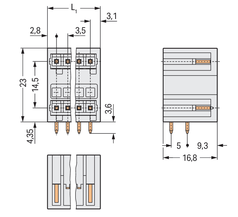 | Kąt płytka drukowana / wtyk: |
