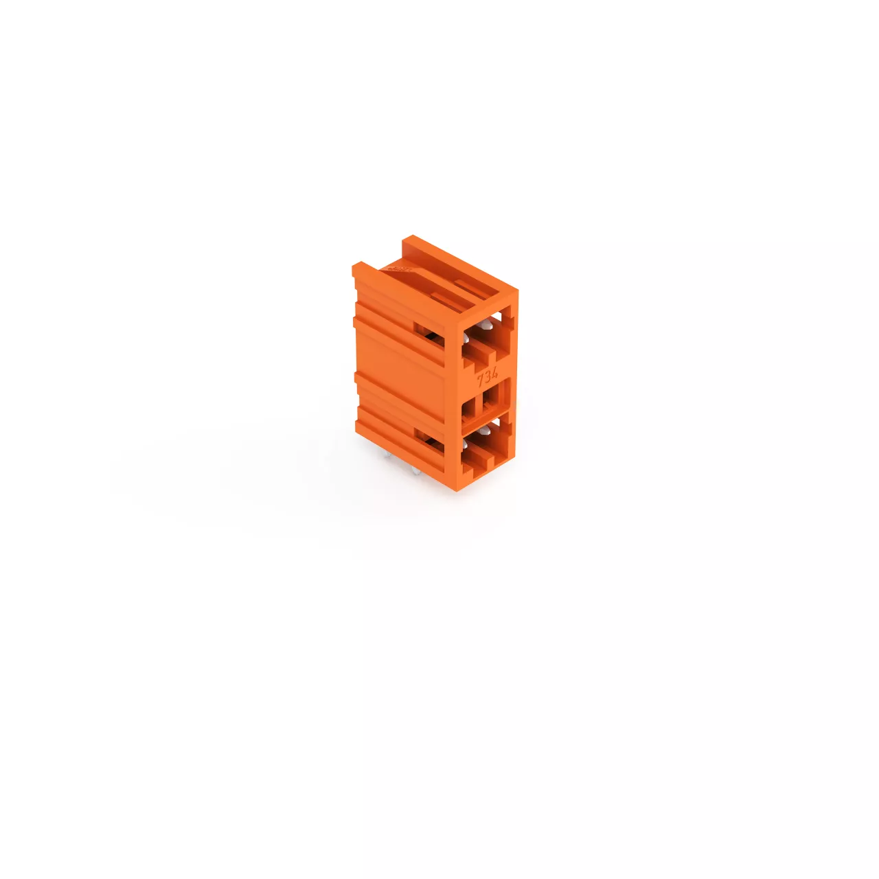 wtyk THT 2-piętrowy; pin lutowniczy 1,0 x 1,0 mm; konstrukcja kątowa; 100% ochrona przed błędnym połączeniem; raster 3,81 mm; 4-bieg.; pomarańczowy
