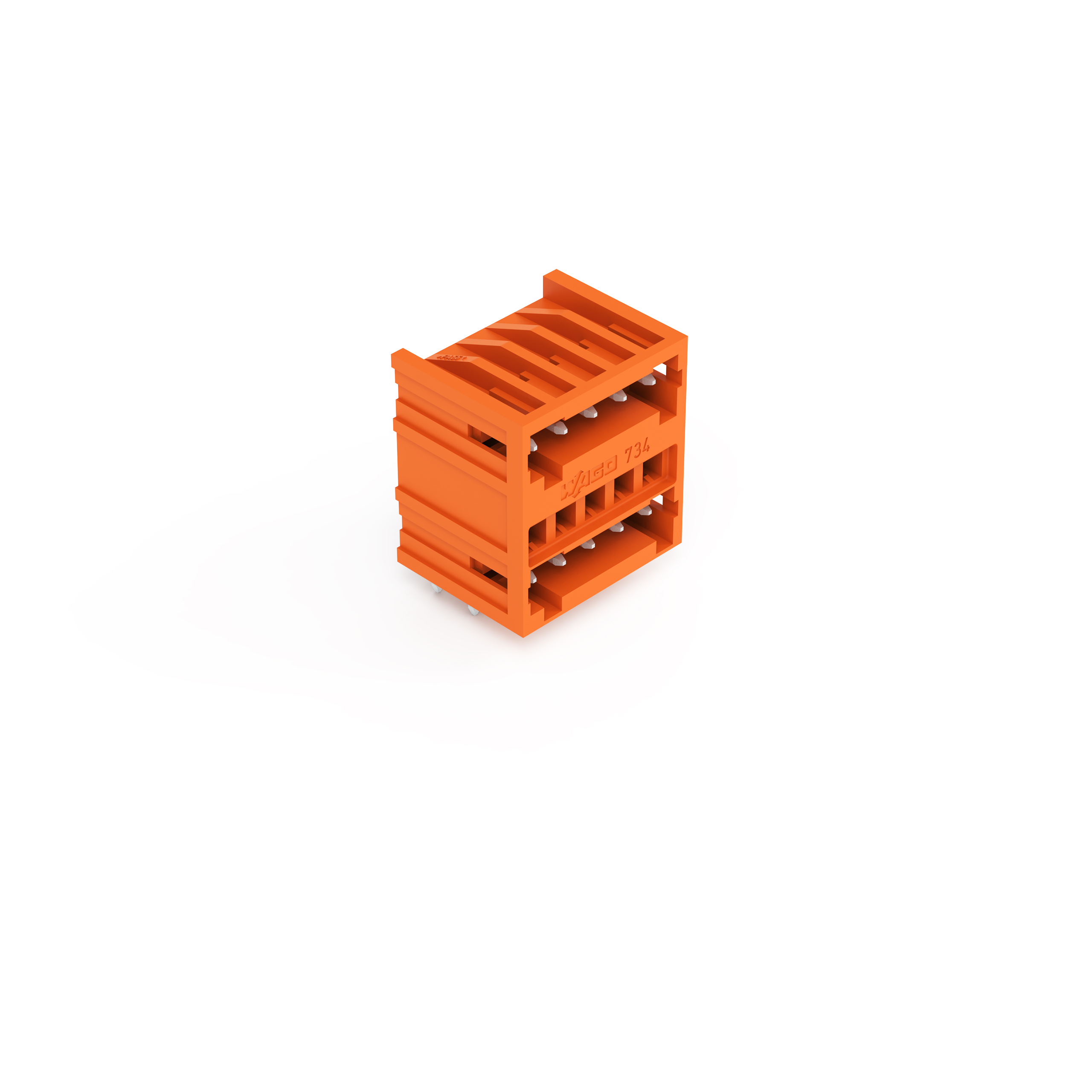 wtyk THT 2-piętrowy; pin lutowniczy 1,0 x 1,0 mm; konstrukcja kątowa; 100% ochrona przed błędnym połączeniem; raster 3,81 mm; 10-bieg.; pomarańczowy