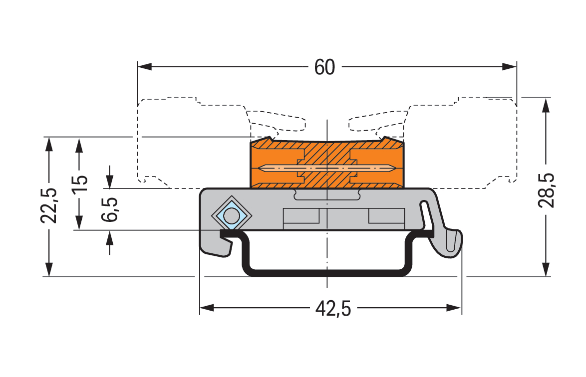 wtyk dwustronny; mocowanie na szynie TS -35; 2-bieg.; raster 5,08 mm; pomarańczowy