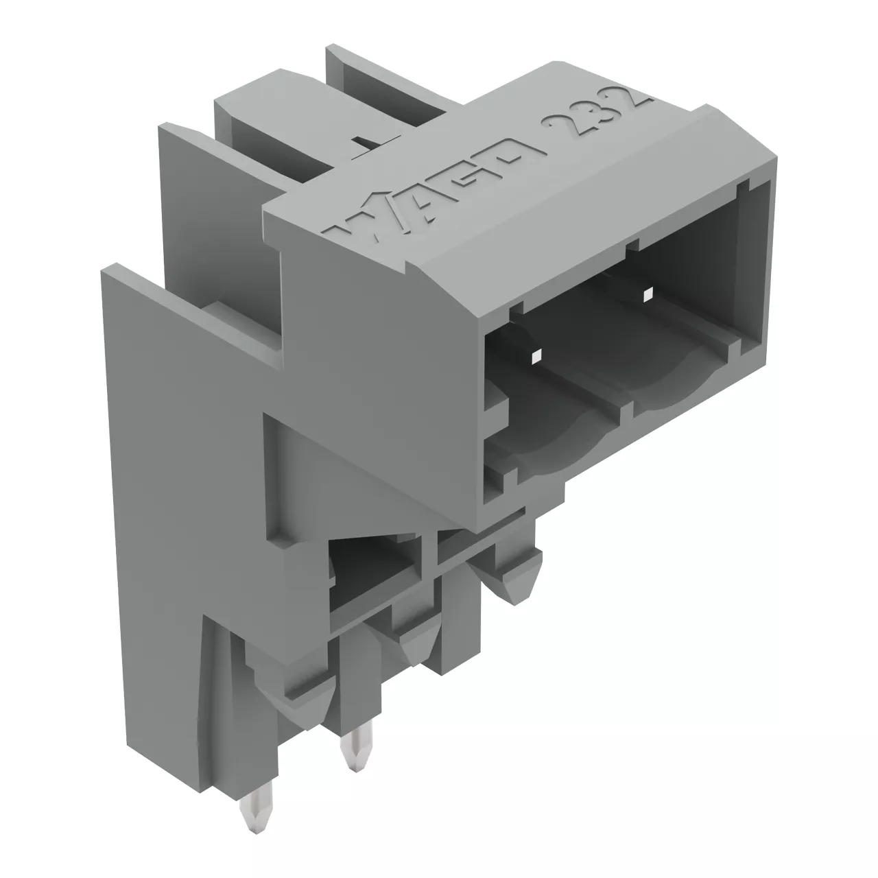 wtyk THT podwyższony; pin lutowniczy 1,0 x 1,0 mm; konstrukcja kątowa; raster 5 mm; 2-bieg.; szary