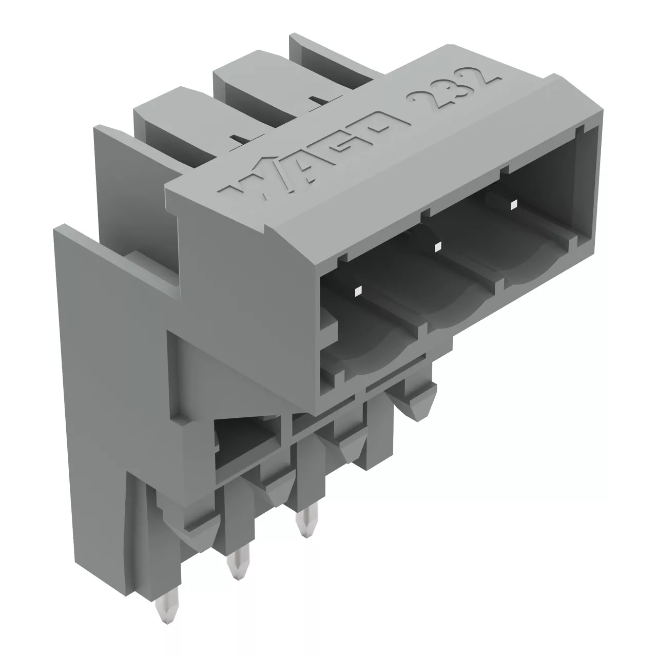 wtyk THT podwyższony; pin lutowniczy 1,0 x 1,0 mm; konstrukcja kątowa; raster 5 mm; 3-bieg.; szary