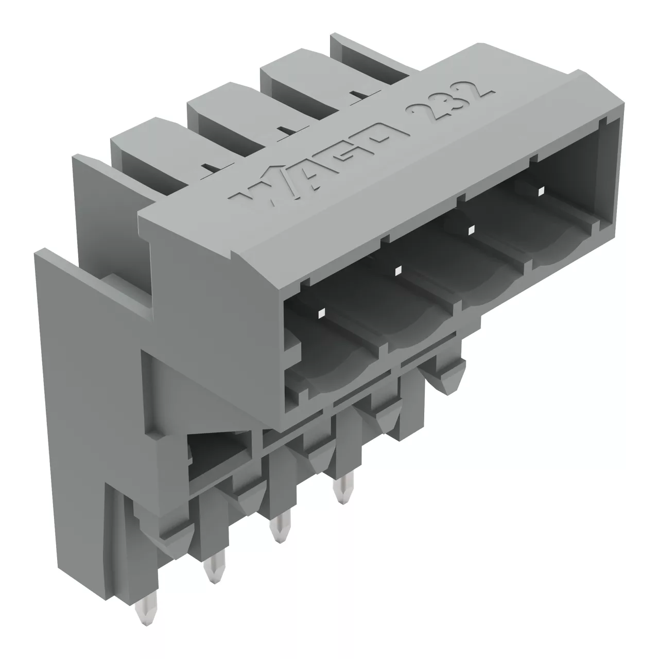 wtyk THT podwyższony; pin lutowniczy 1,0 x 1,0 mm; konstrukcja kątowa; raster 5 mm; 4-bieg.; szary