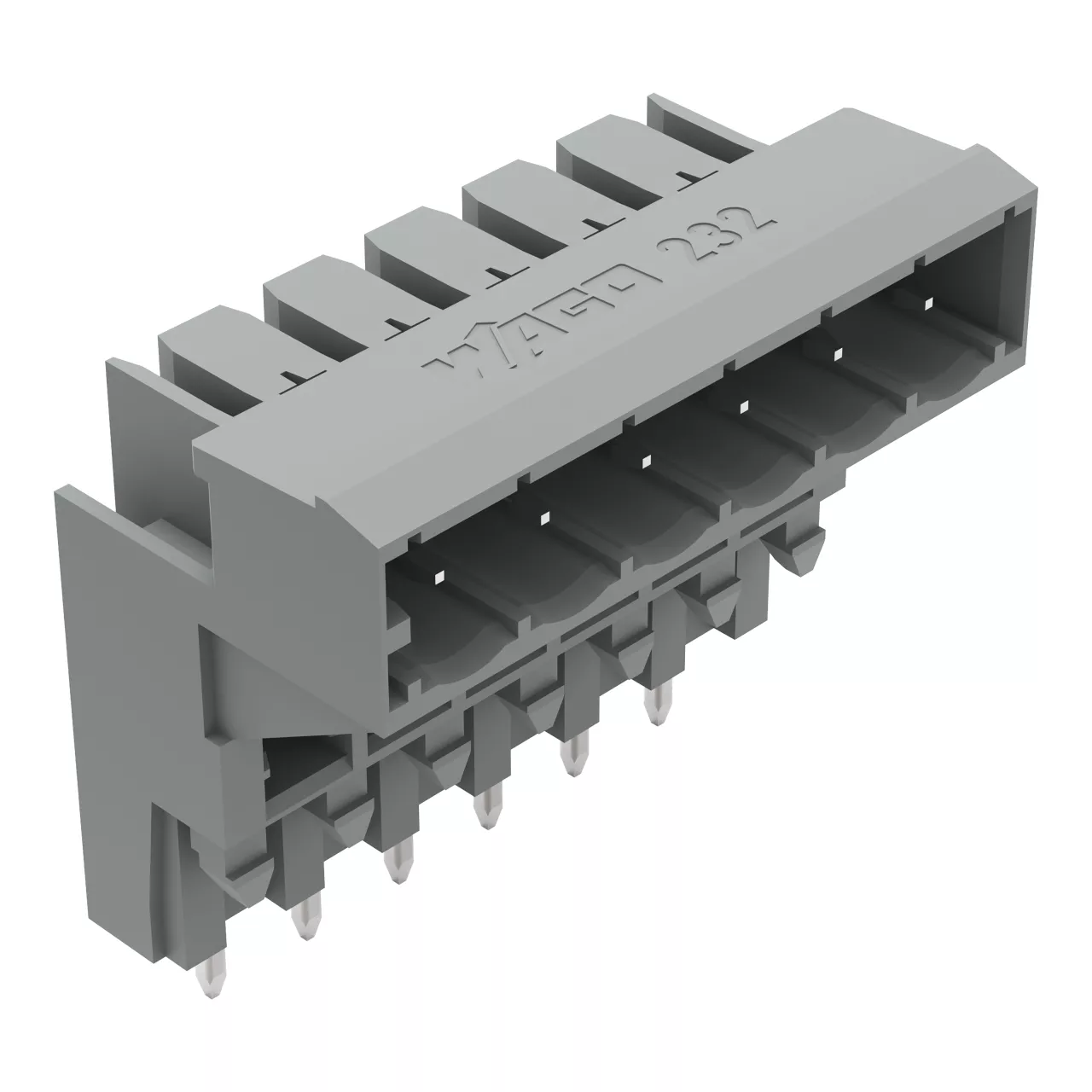 wtyk THT podwyższony; pin lutowniczy 1,0 x 1,0 mm; konstrukcja kątowa; raster 5 mm; 6-bieg.; szary