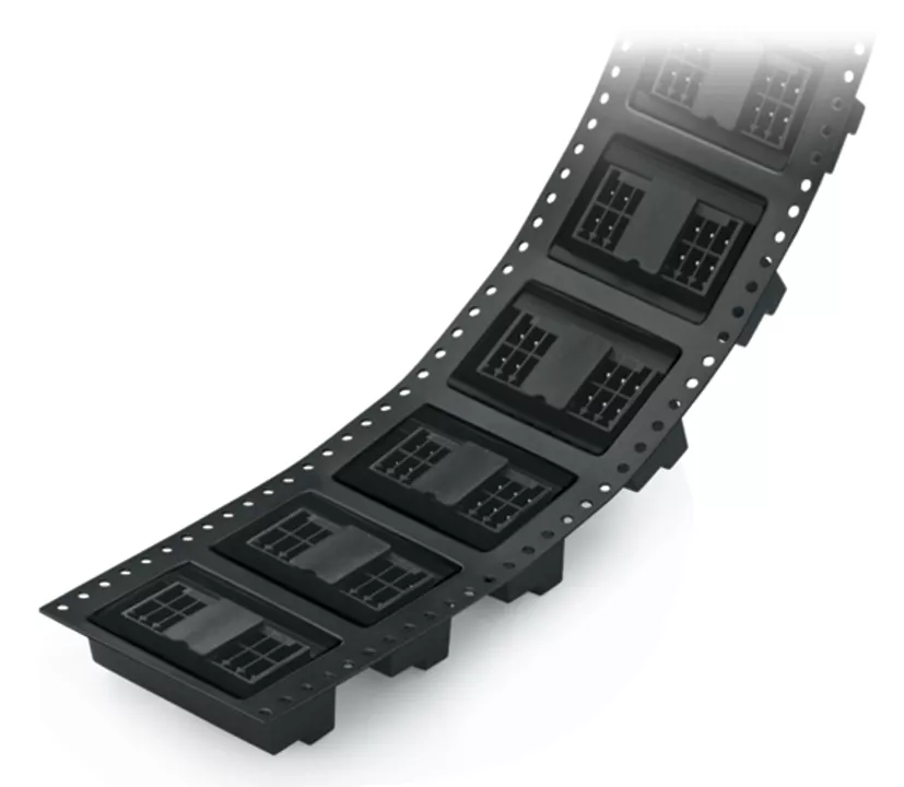 wtyk THR 2-rzędowy; pin lutowniczy 0,8 x 0,8 mm; konstrukcja prosta; 100% ochrona przed błędnym połączeniem; blokada; w rolce; raster 3,5 mm; 6-bieg.; czarny