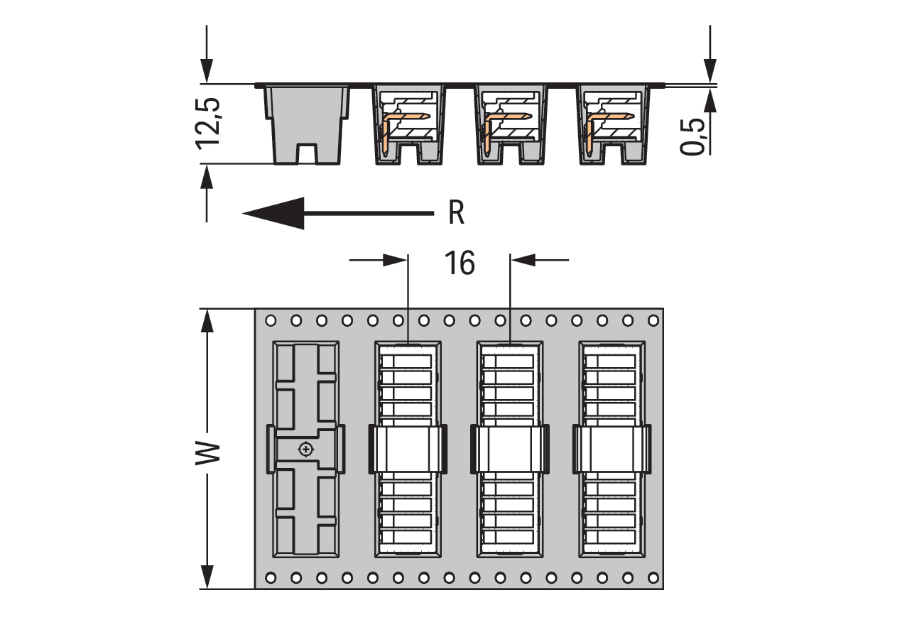 wtyk THR; pin lutowniczy 0,8 x 0,8 mm; konstrukcja kątowa; 100% ochrona przed błędnym połączeniem; w rolce; raster 2,5 mm; 2-bieg.; czarny