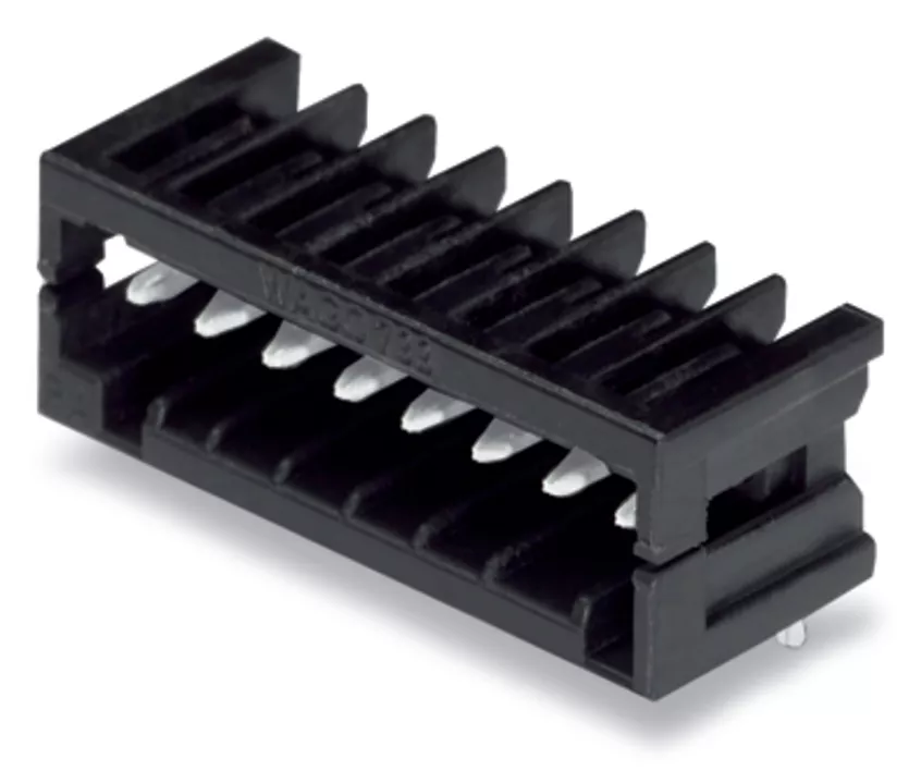 wtyk THR; pin lutowniczy 0,8 x 0,8 mm; konstrukcja kątowa; 100% ochrona przed błędnym połączeniem; raster 2,5 mm; 9-bieg.; czarny