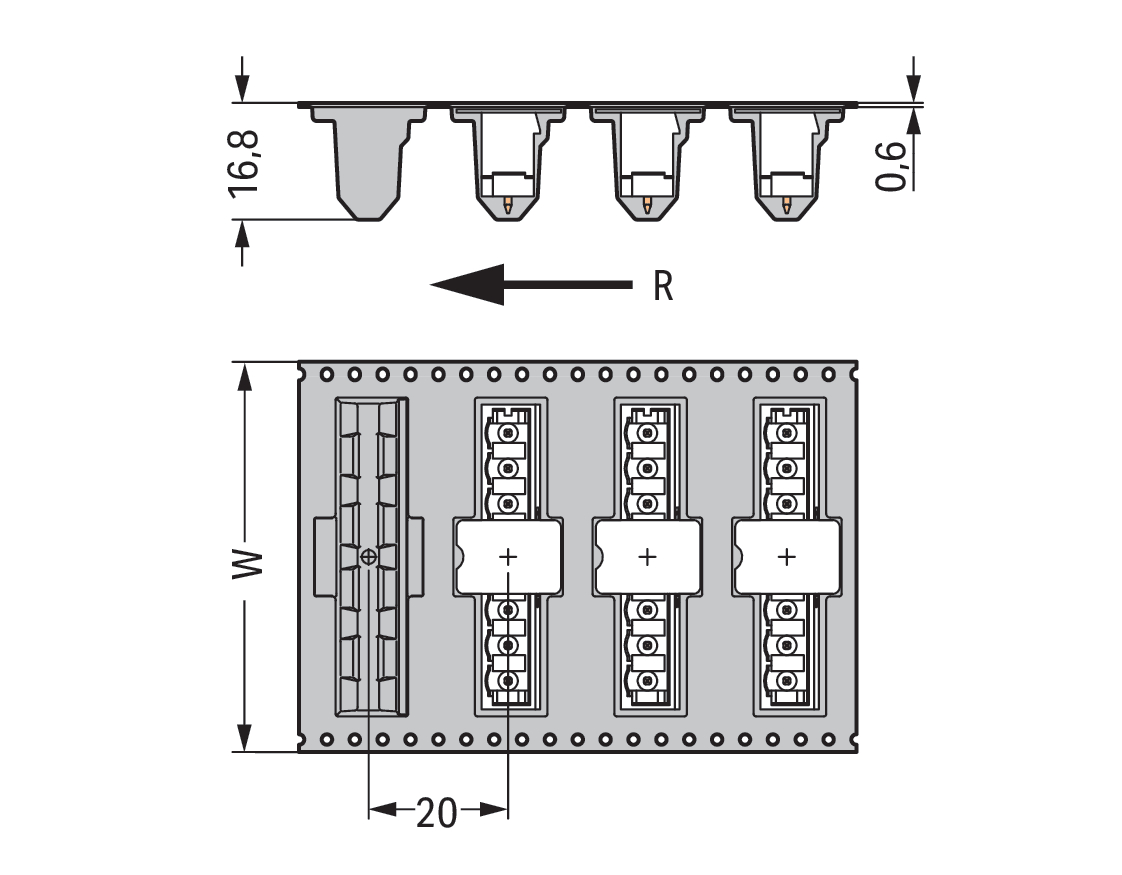 wtyk THR; pin lutowniczy 1,0 x 1,0 mm; konstrukcja prosta; w rolce; raster 5 mm; 12-bieg.; czarny