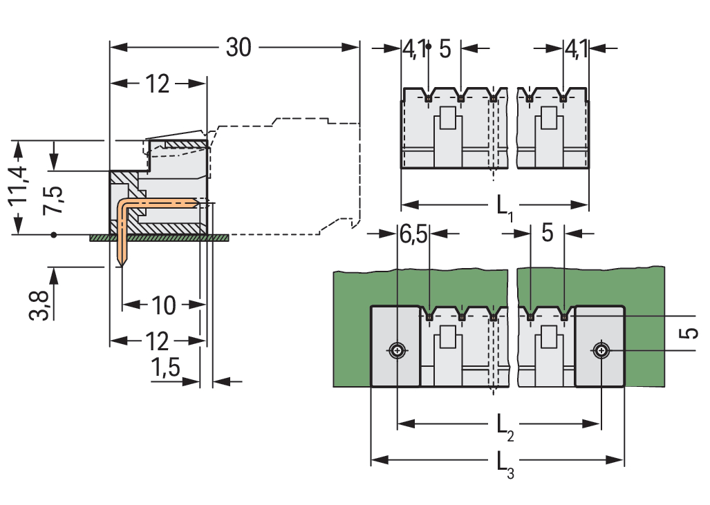 | Kąt płytka drukowana / wtyk: |