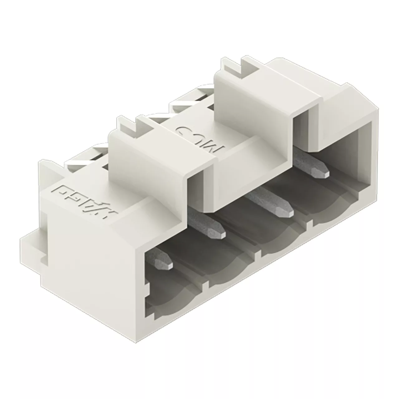 wtyk THT; pin lutowniczy 1,0 x 1,0 mm; konstrukcja kątowa; 100% ochrona przed błędnym połączeniem; wyprzedzający styk PE; raster 5 mm; 4-bieg.; jasnoszary