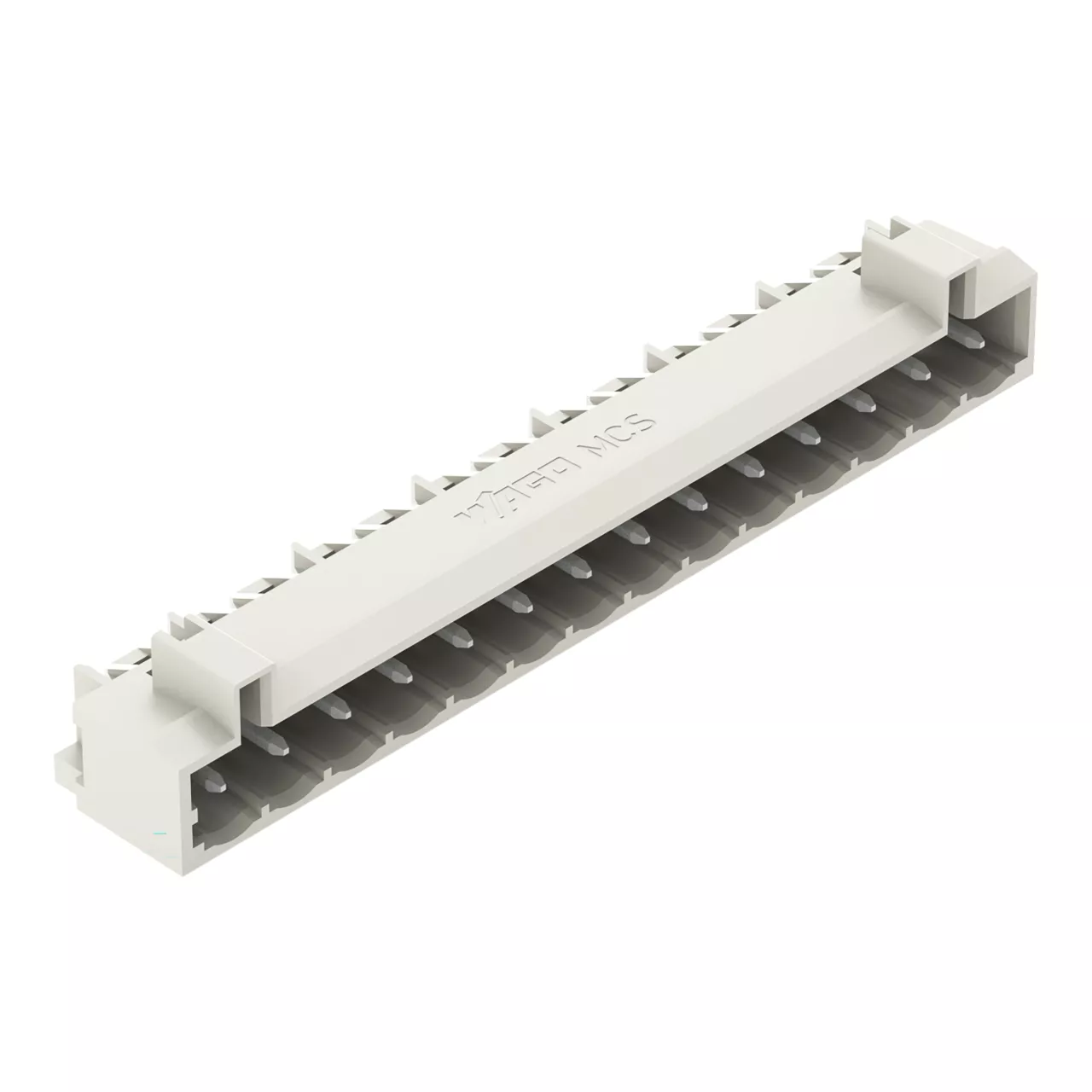 wtyk THT; pin lutowniczy 1,0 x 1,0 mm; konstrukcja kątowa; 100% ochrona przed błędnym połączeniem; raster 5 mm; 14-bieg.; jasnoszary