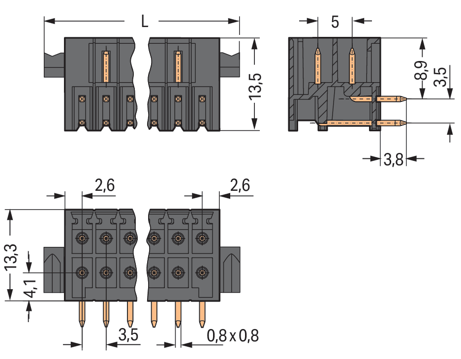 | Długość pinów: |
