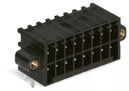 wtyk THT 2-rzędowy; pin lutowniczy 0,8 x 0,8 mm; konstrukcja kątowa; 100% ochrona przed błędnym połączeniem; gwintowy uchwyt montażowy; raster 3,5 mm; 20-bieg.; czarny