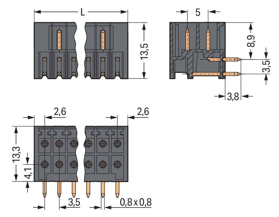 | Długość pinów: |