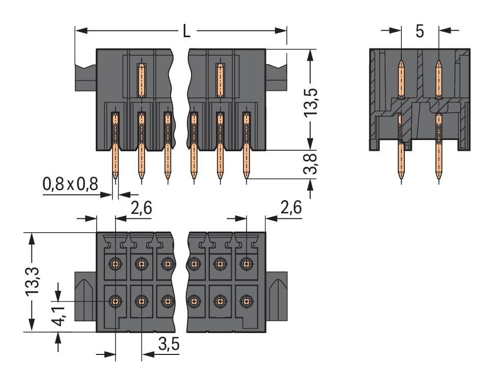 | Długość pinów: |