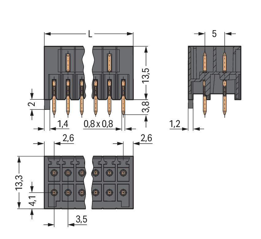 wtyk THT 2-rzędowy; pin lutowniczy 0,8 x 0,8 mm; konstrukcja prosta; 100% ochrona przed błędnym połączeniem; z wypustem prowadzącym; raster 3,5 mm; 10-bieg.; czarny