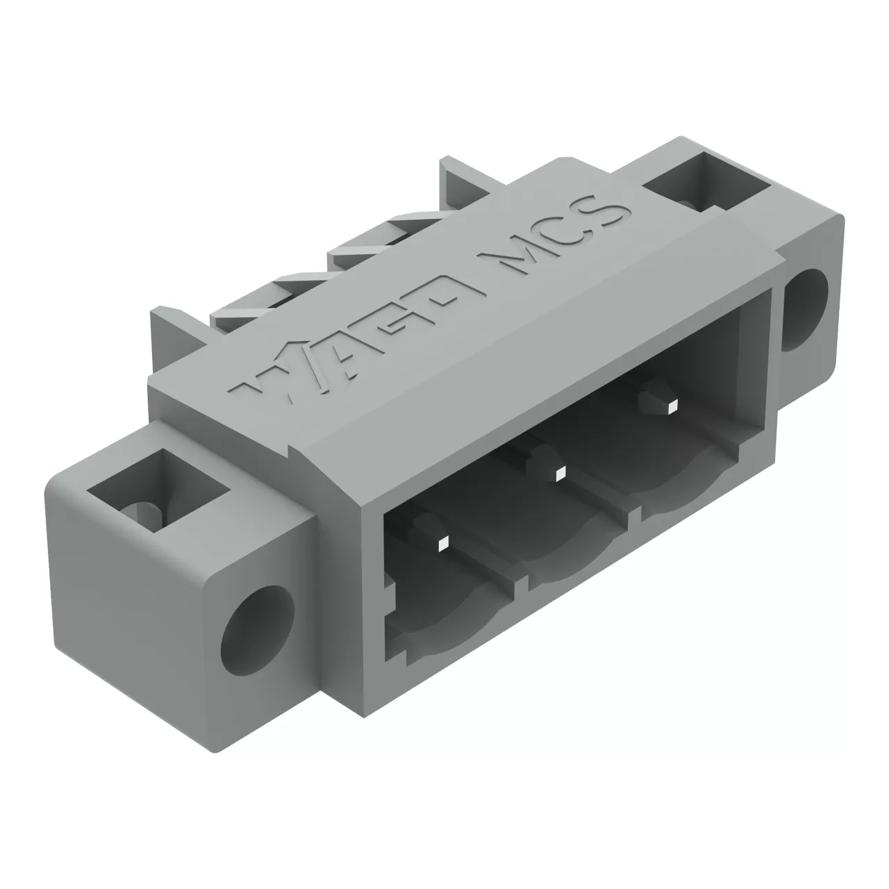 wtyk THT; pin lutowniczy 1,0 x 1,0 mm; konstrukcja kątowa; kołnierz mocujący; raster 5 mm; 3-bieg.; szary