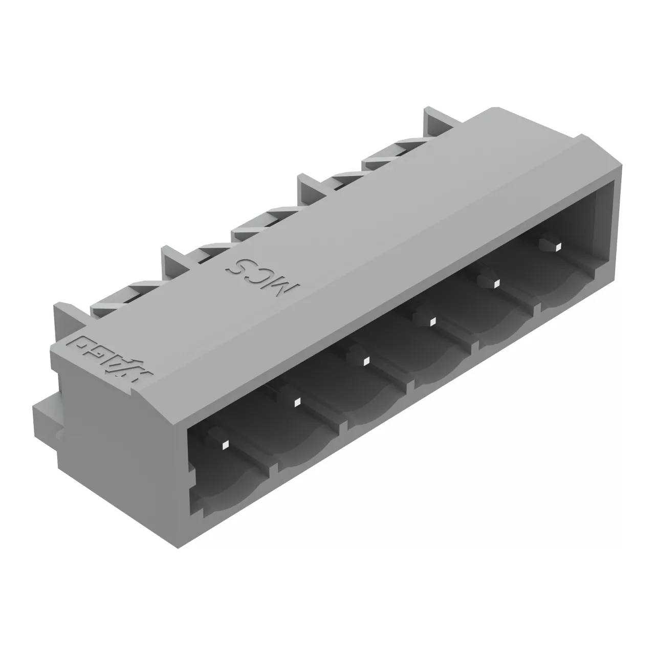 wtyk THT; pin lutowniczy 1,0 x 1,0 mm; konstrukcja kątowa; raster 5 mm; 6-bieg.; szary