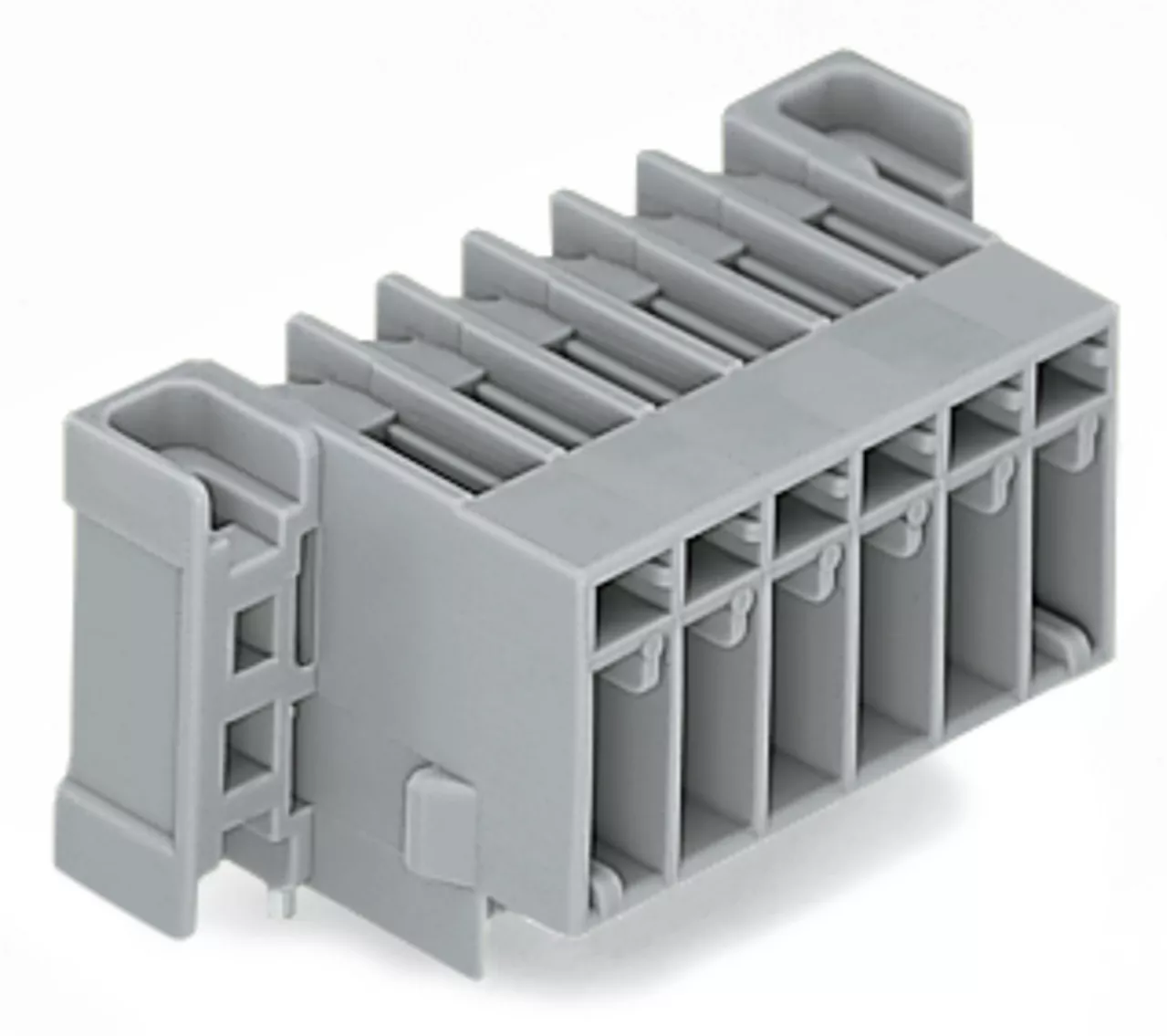 wtyk THT; pin lutowniczy 1,0 x 1,0 mm; konstrukcja kątowa; kołnierz mocujący; raster 5 mm; 12-bieg.; szary