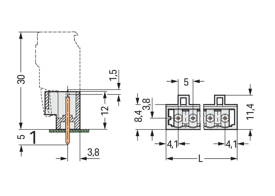wtyk THT; pin lutowniczy 1,0 x 1,0 mm; konstrukcja prosta; 100% ochrona przed błędnym połączeniem; raster 5 mm; 3-bieg.; jasnoszary