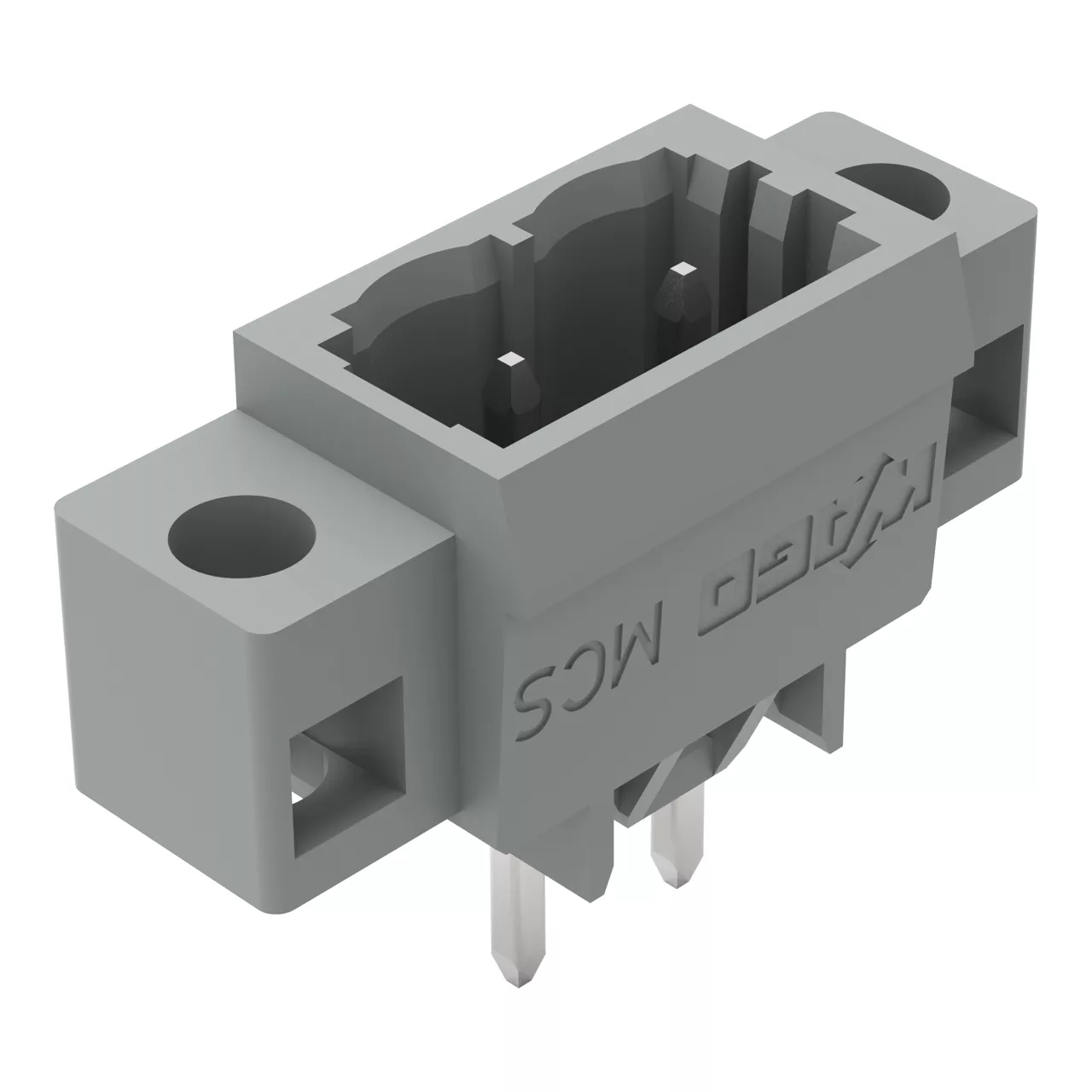 wtyk THT; pin lutowniczy 1,0 x 1,0 mm; konstrukcja prosta; kołnierz mocujący; raster 5 mm; 2-bieg.; szary