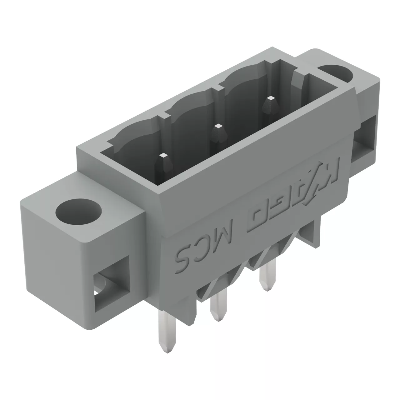 wtyk THT; pin lutowniczy 1,0 x 1,0 mm; konstrukcja prosta; kołnierz mocujący; raster 5 mm; 3-bieg.; szary