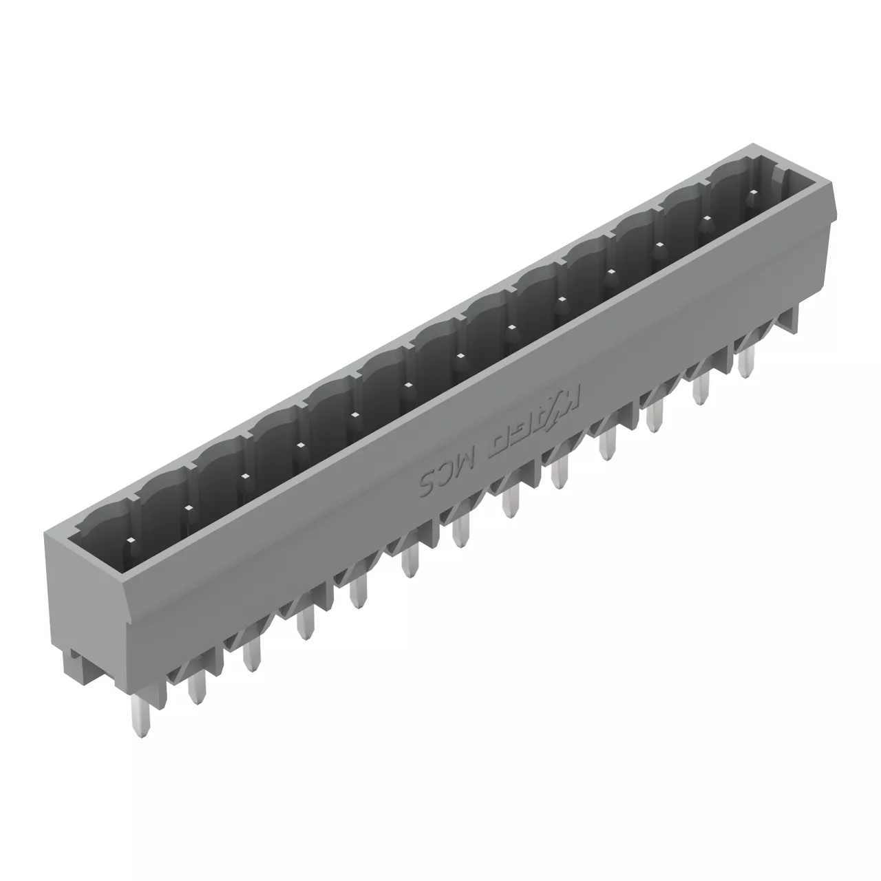 wtyk THT; pin lutowniczy 1,0 x 1,0 mm; konstrukcja prosta; raster 5 mm; 13-bieg.; szary