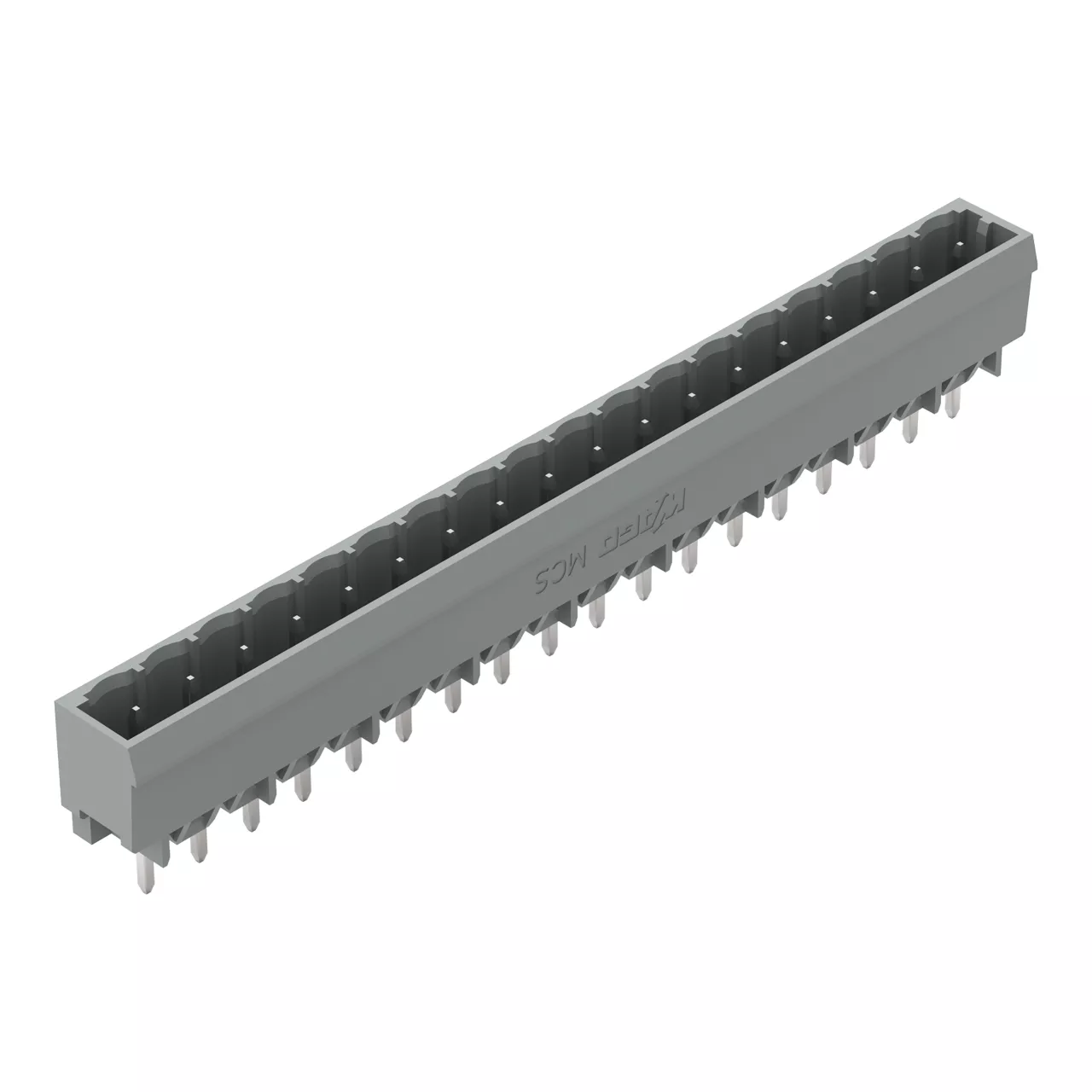 wtyk THT; pin lutowniczy 1,0 x 1,0 mm; konstrukcja prosta; raster 5 mm; 18-bieg.; szary
