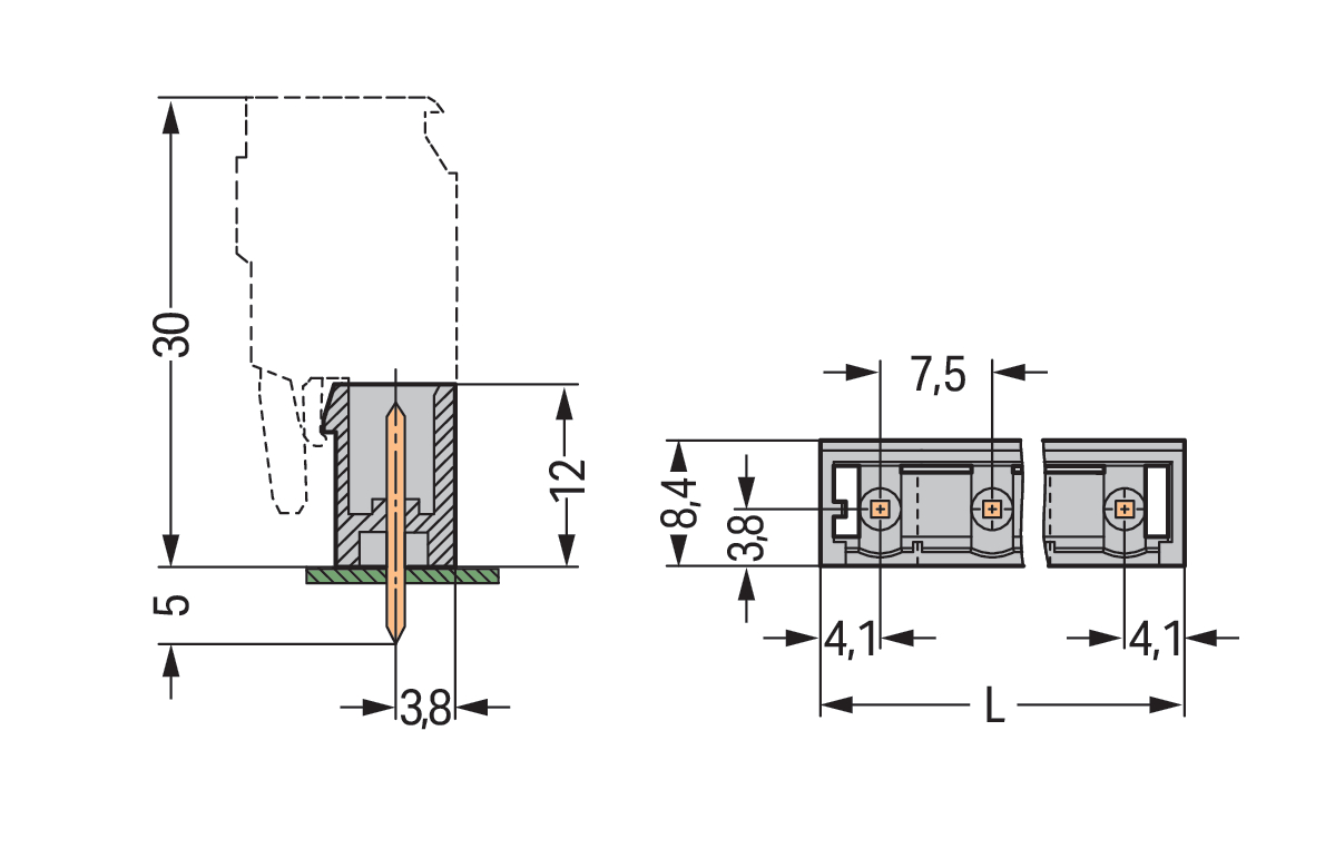 | Kąt płytka drukowana / wtyk: |
