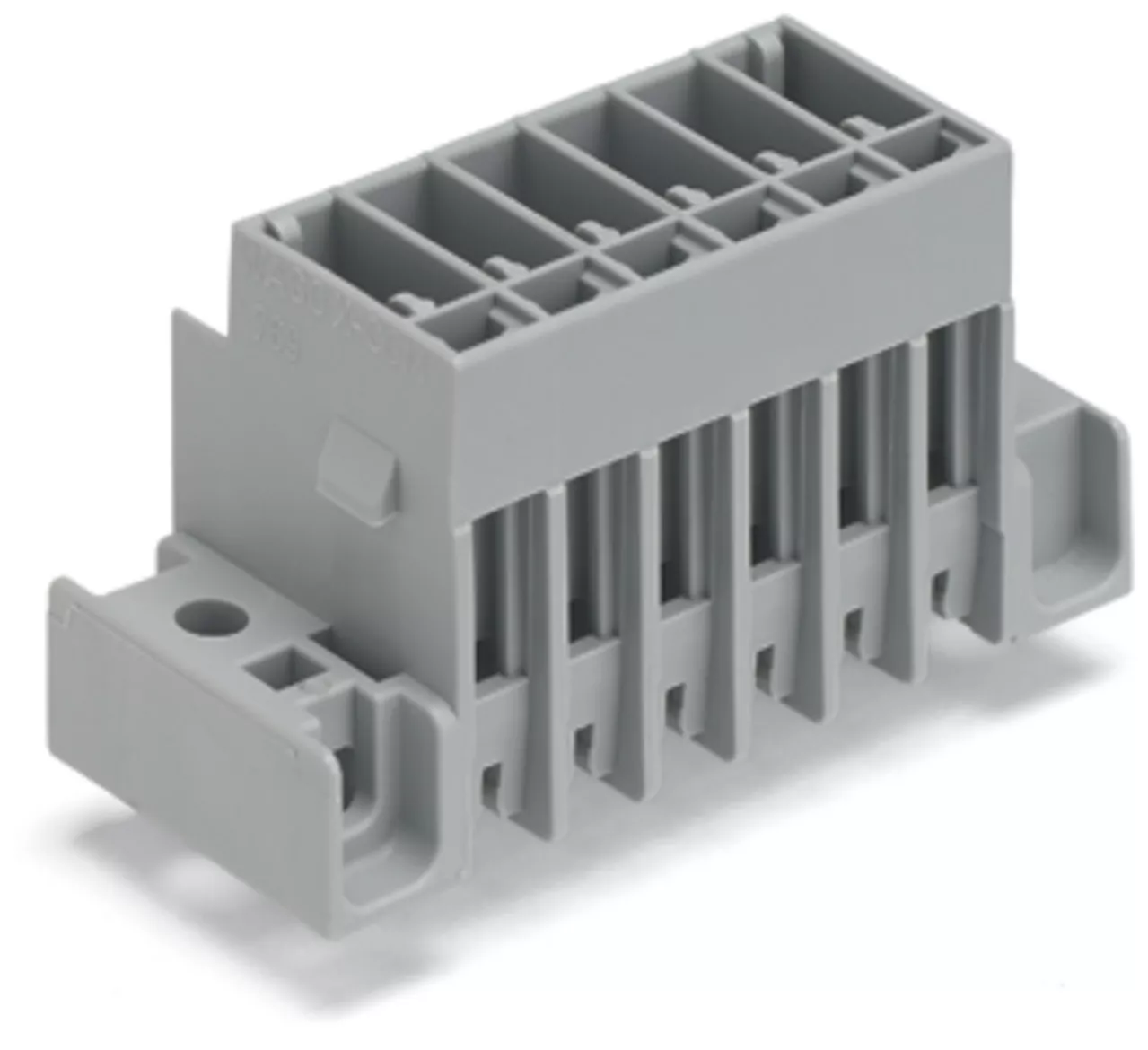 wtyk THT; pin lutowniczy 1,0 x 1,0 mm; konstrukcja prosta; kołnierz mocujący; raster 5 mm; 2-bieg.; szary