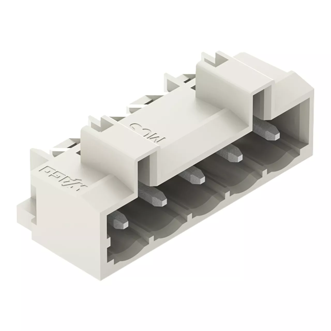 wtyk THT; pin lutowniczy 1,2 x 1,2 mm; konstrukcja kątowa; 100% ochrona przed błędnym połączeniem; raster 5 mm; 5-bieg.; jasnoszary
