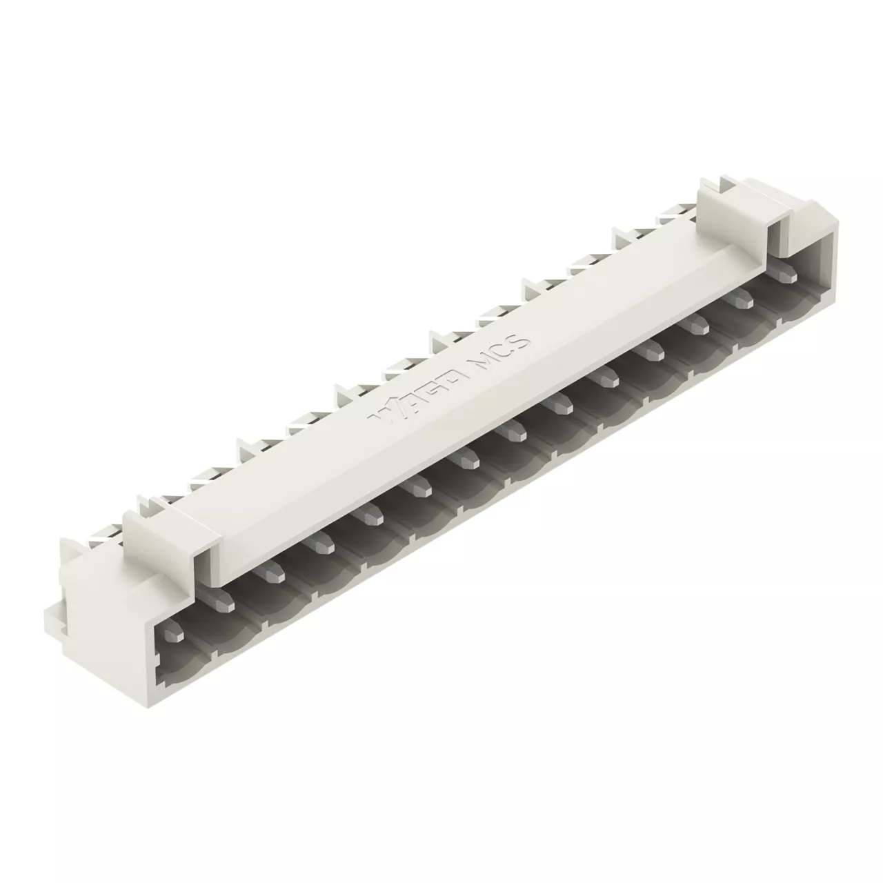 wtyk THT; pin lutowniczy 1,2 x 1,2 mm; konstrukcja kątowa; 100% ochrona przed błędnym połączeniem; raster 5 mm; 14-bieg.; jasnoszary