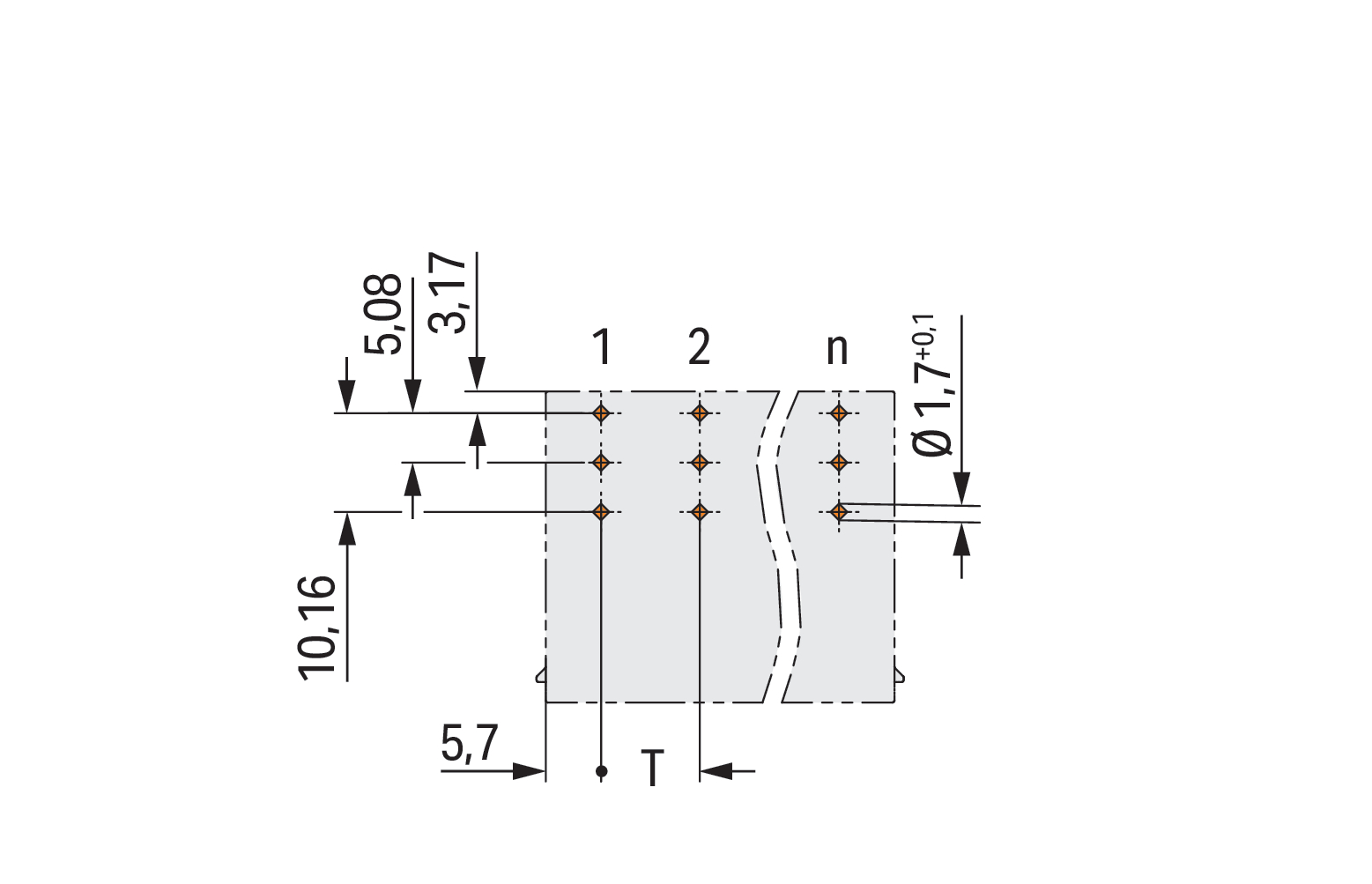 wtyk THT; pin lutowniczy 1,2 x 1,2 mm; konstrukcja kątowa; 100% ochrona przed błędnym połączeniem; zestyki posrebrzane; raster 10,16 mm; 5-bieg.; jasnoszary