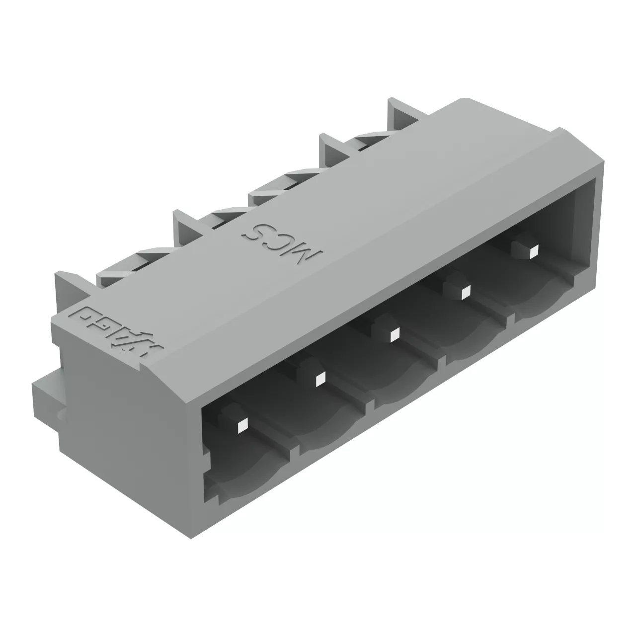 wtyk THT; pin lutowniczy 1,2 x 1,2 mm; konstrukcja kątowa; raster 5 mm; 5-bieg.; szary